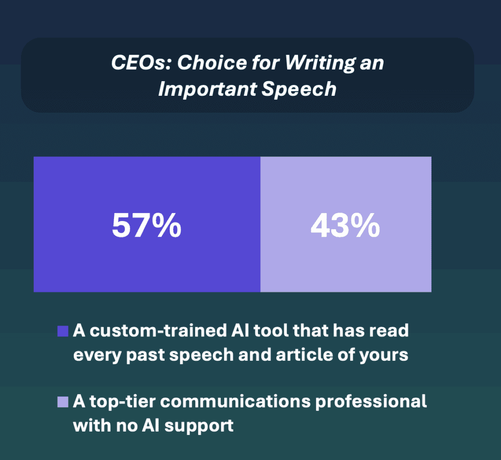 A new Ragan / HarrisX survey suggests CEOs now prefer AI for their speechwriting to a "top-tier communications professional." Not the CEOs who matter, I suggest. (Not yet, anyway.)