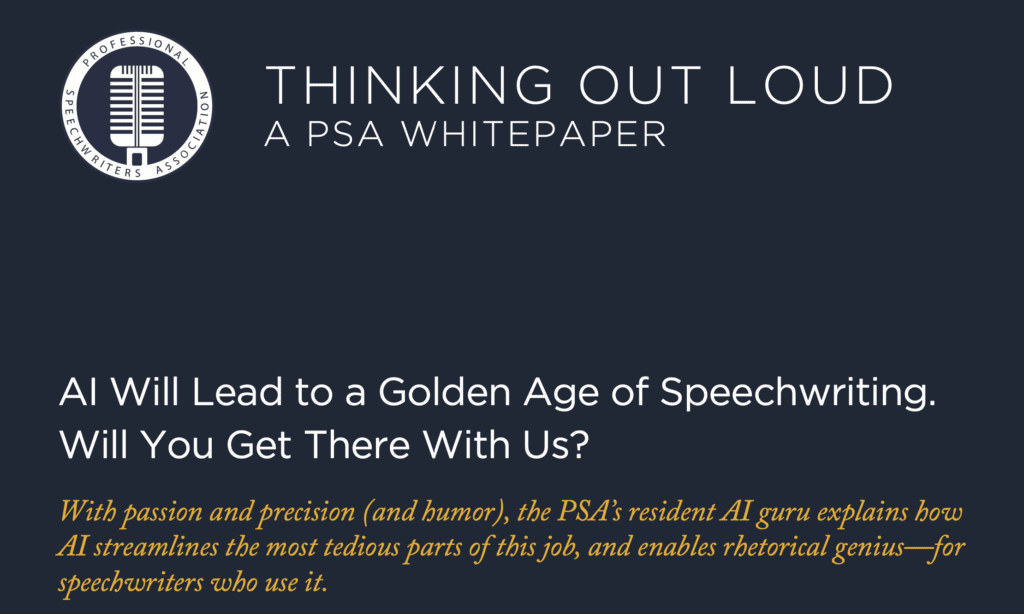 The Professional Speechwriters Association recently published a new white paper, “AI Will Lead to a Golden Age of Speechwriting. Will You Get There With Us?” by Brent Kerrigan.