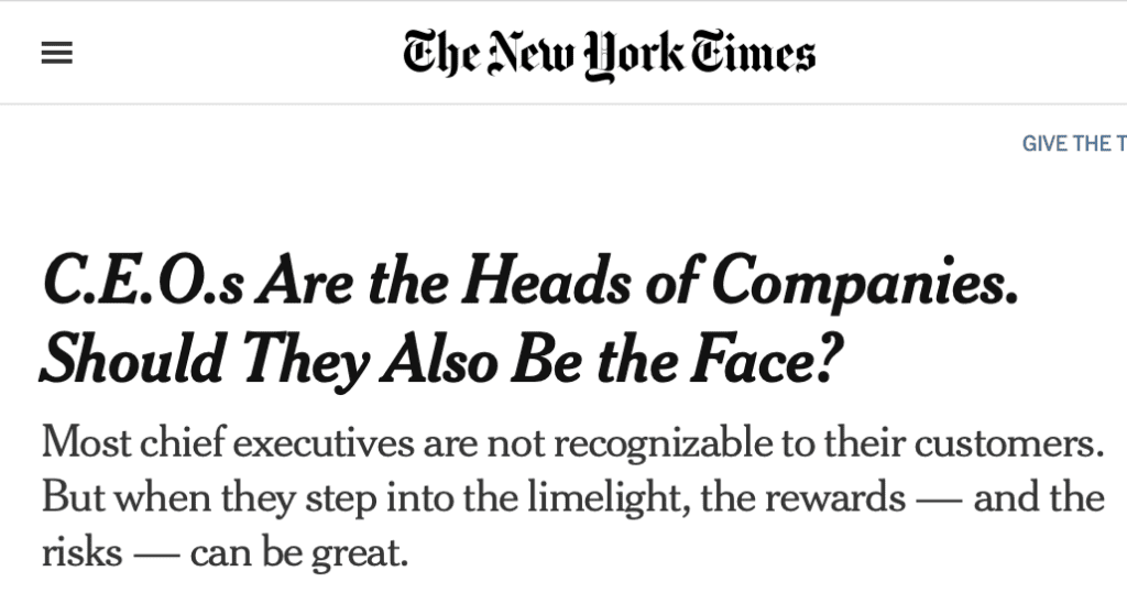 This week The New York Times published a piece headlined, “CEOs Are the Heads of Companies. Should They Also Be the Face?”